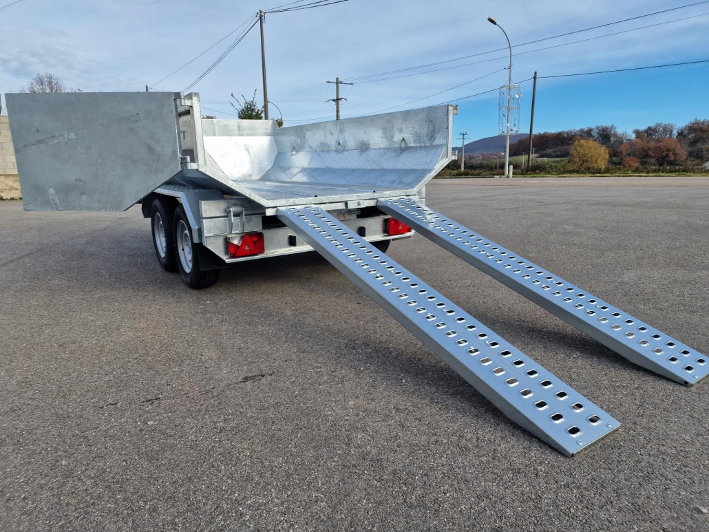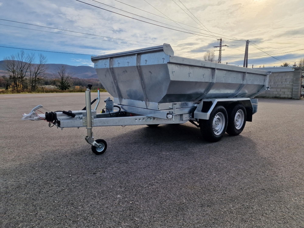Benne basculante hydraulique par vérin hydraulique + Electro-pompe 12 V avec batterie.