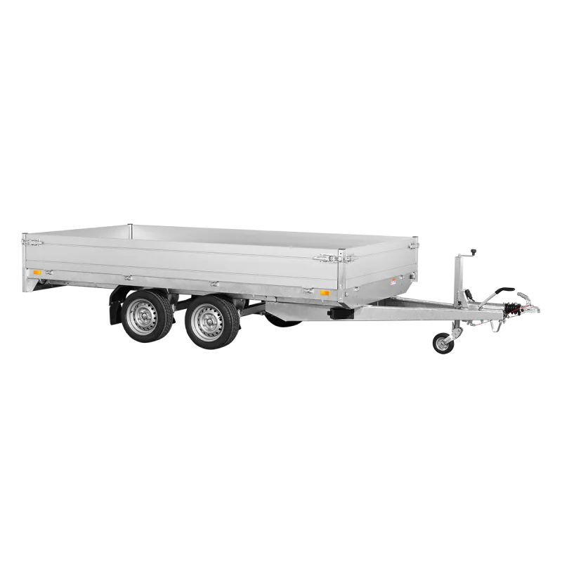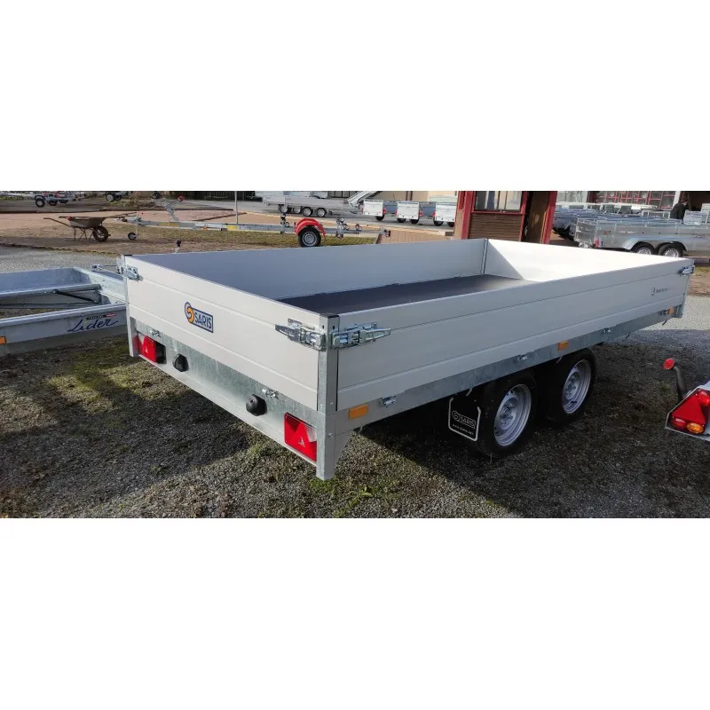 La remorque plateau Saris PL35618427002 possède un châssis entièrement soudé, des ridelles en aluminium double paroi.