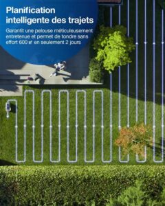 Démarrage rapide avec Press & Mow : Finies les configurations compliquées et les menus interminables. Il suffit d’appuyer sur les boutons Start et OK pour que la tondeuse démarre automatiquement et commence à tondre votre pelouse. Profitez d’un accès rapide et facile à une pelouse bien entretenue, ce qui vous fait gagner du temps et des efforts.